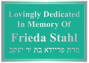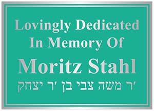 ![]() 12" x 30" cast bronze plaque. Raised Satin gold letters, single line border with leatherette finish background, English and Hebrew lettering |