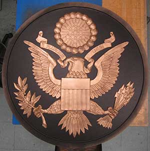 | MILITARY SEALS: Official armed forces insignia are manufactured in solid bronze or aluminum and finished with four blind mount screw holes. Each seal is available in 18", 24", 30" & 36" diameters. Screws included with purchase. Choose from Army, Navy, Air Force, Marines or Coast Guard. | ||||||||||||||||||||||||||||||