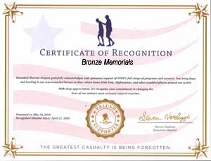 Bronze Memorials donates monthly to the Wounded Warrior Project.