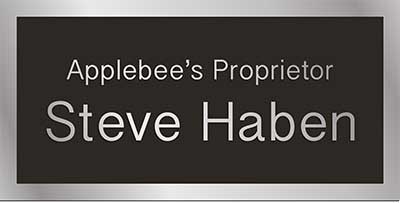 ![]() 6"x8" aluminum plaque with black background and raised silver letters and double line border |