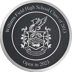 ![]() 12” X 12” Aluminum Plaque with black background and raised silver letters |