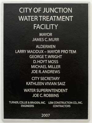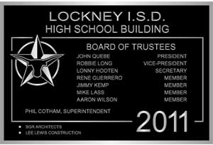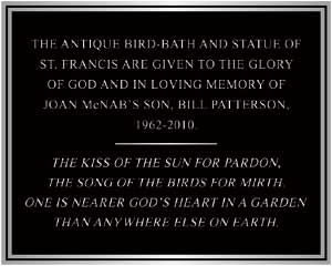![]() 10" x 8" Cast Aluminum Plaque Black leatherette background with raised satin silver letters and border. |