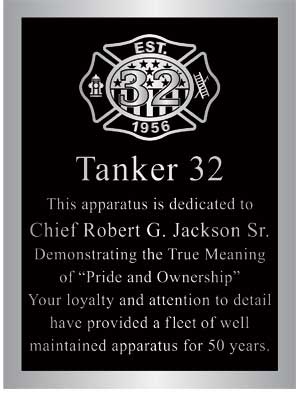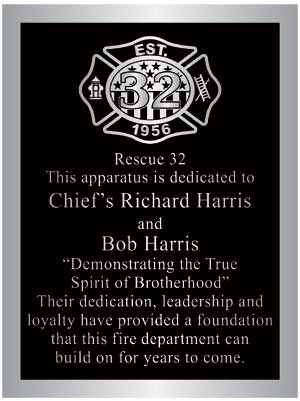 ![]() 12"X16" aluminum plaque with wide bevel border black leatherette background raised silver letters and border. Maltese Cross logo. |