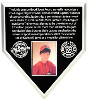 ![]() 18" x 20" Full Color Aluminum Plaque. Baseball home plate with beveled edge. |