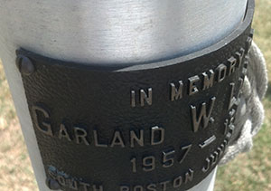![]() 6" x 7" Aluminum Curved Flag Pole Plaque. Black leatherette w/Satin Surface. Raised Silver letters. Single Line Bevel Border. |