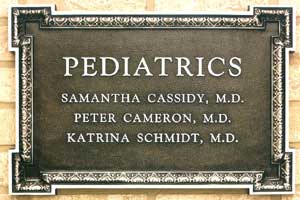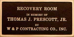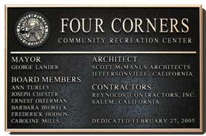 ![]() 12 x 8 Cast Bronze Border: Single line bevel edge Finish: Satin on letters & border; light oxide leatherette textured background |