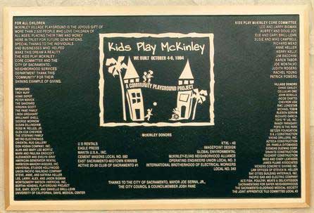 ![]() Contributor Recognition Plaque - Kids Play McKinley 36 x 24 Single line bevel edge Dark brown on leatherette texture; satin bronze on raised areas |