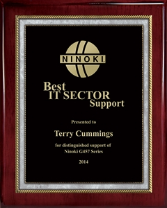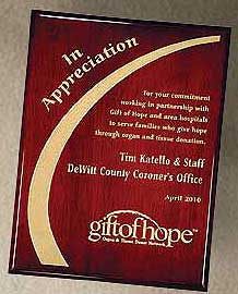 ![]() PSA #CD662B High-Gloss Mahogany Finish Board with Gold Swirl Plate under Lasered Raised Lucite 8 x 10 -- 9 x 12 |