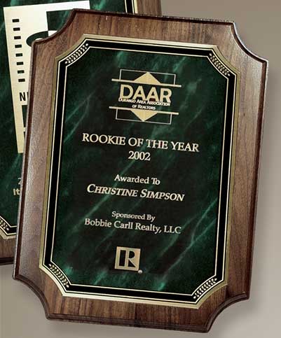 Genuine Marble and Rosewood Plaque Sand-etched and Gold Color-Fill ![]() PSA #CD450 9" x 12" |