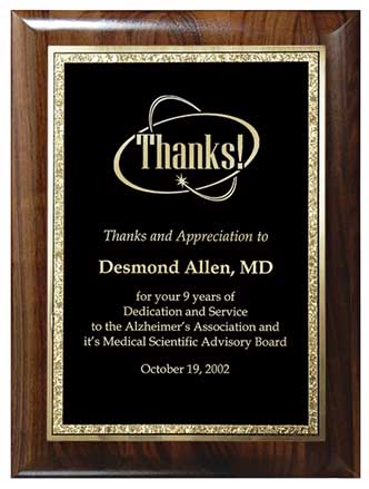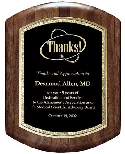 ![]() CDA #010400 The Picture Plaques are made in the USA! This plaque features a classic walnut finish and elegant laser-engraved plate. 9 x 12 -- More Styles |