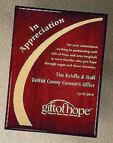 Rosewood Piano Wood Plaque with Gold Color-Fill ![]() PSA #CD171B 9" x 12" |