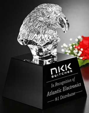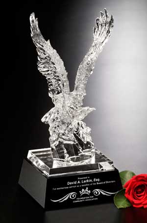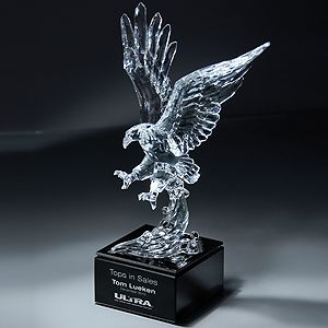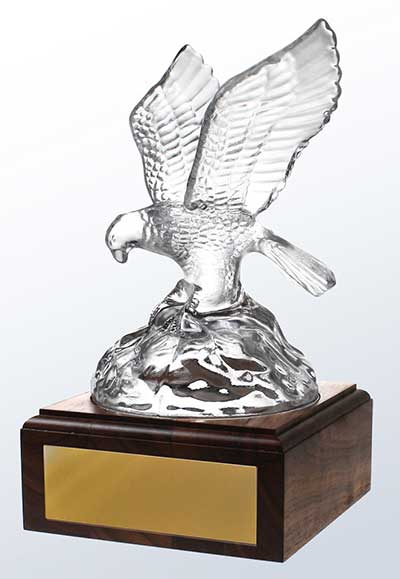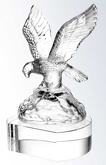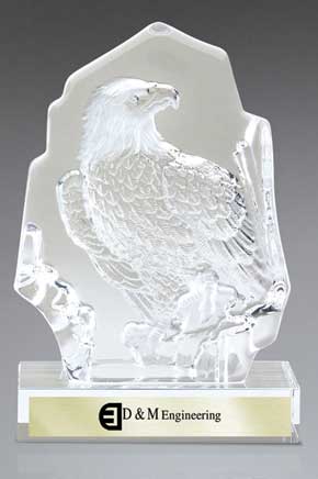 Sculpted Crystal Eagle Award with Gold Lasered Plate on Base ![]() PSA #GM480 5” x 7½” Weight: 3.9 lbs. |