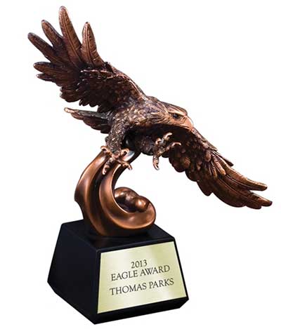 Eagle on Tall Base ![]() TMA #S9913 Dimension: H 8 x W 3 1/8 x D 3 1/8" Imprint Sizes: H 5 x W 1 1/2" |