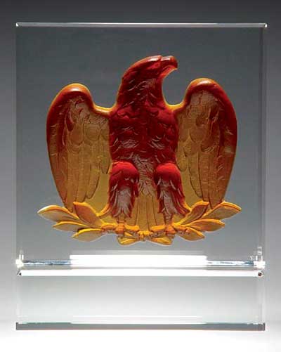 The bald eagle is cast in molded glass and set upon an optic crystal base. ![]() TMA #CG1102S Item Dimension: H 6 3/4 x W 6 5/8 x D 2" Imprint Sizes: H 1 3/4 x W 2 7/8" TMA CG1120L Dimension: H 8 3/8 x W 4 7/8 x D 2" Imprint Sizes: H 1 3/4 x W 3 1/2" |