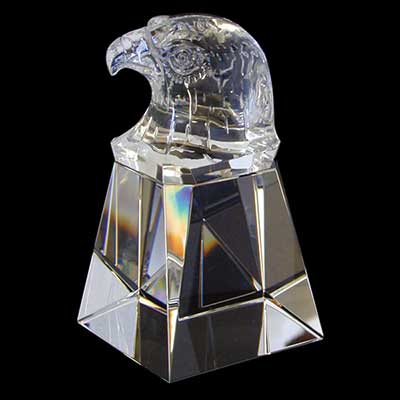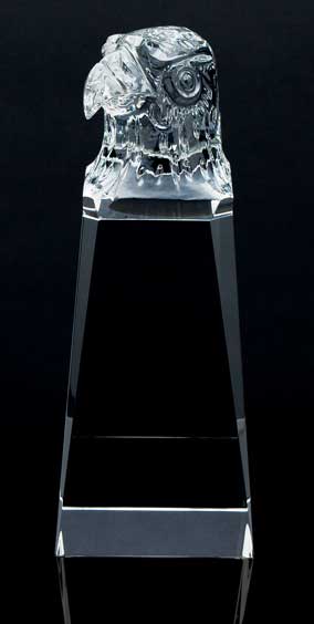 Towering Optic Crystal Eagle Head on Black Base ![]() PSA #GM482 3½” x 10½” Weight: 8.0 lbs. |
