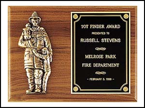 Firematic award with antique bronze finish casting. ![]() AFA #P7x - 9"x 12" |