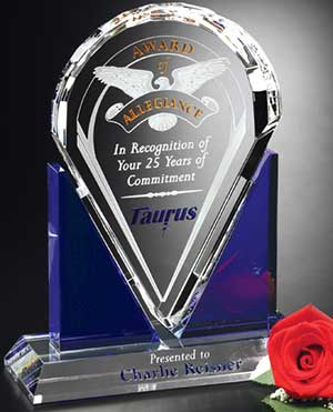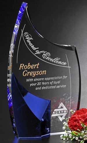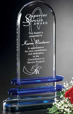 Blue and optically clear crystal oppose each other in the Acclaim Award. It is a beautiful combination of two very exclusive materials. Choose this award for your next recognition event! ![]() CDA #6792 - Acclaim Award 7"
