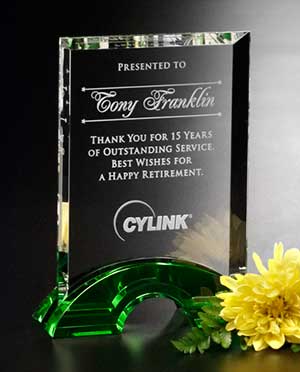 The Greenbury Award is an award that rests on a small foundation of emerald crystal. This foundation boasts a gorgeous rectangle of stunning optical offering unlimited appeal! ![]() CDA #4086 - Greenbury Award 8-1/2" Crystal
