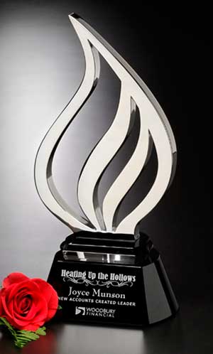 The handblown Red Flame rises up from the black glass base to create an image of unending transformation just as flames transform from one to the next in a fire. Consider this award to honor individuals who possess the undying flame of motivation. ![]() CDA #7223 - Red Flame 16"