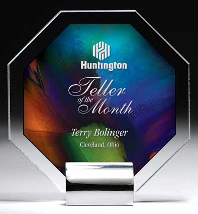 The graceful waves and smooth tapered sides of this award add dimension to this brilliantly handcrafted optical crystal award. Any 4-color photo can be incorporated into this award's design. ![]() CDA#045803 8"