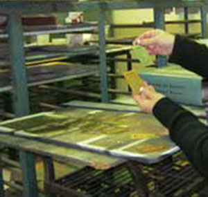 ![]() Etched plaques and photos are made in a sealed room complete with sulfuric acid tanks where hundreds of plaques a month are processed. No one goes in there without a mask and gloves as this is a sealed room because of the sulfuric acid in the many tanks. |