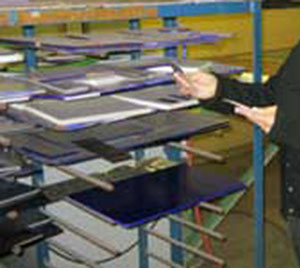 ![]() One of the finishing stations. It is very hands on to be sure there are no imperfections in the finished plaque |