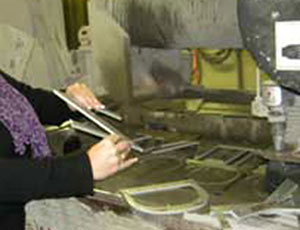 ![]() The sand is removed from the mold and the cooled plaque is put on track to finishing and polishing |