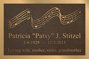 Jim; The memorial plaque arrived way ahead of schedule and is absolutely stunning! we cannot thank you enough for the professional service you have provided. The follow up phone calls and emails to me to ensure everything was correct, reminded me of “the old days”, when business was conducted with the client being the main focus, instead of the financial bottom line. It is refreshing to see your business cares about their clients, as evidenced by our transaction, and it’s obvious why you have been in business so long. The loss of a dear friend is tragic, but your help in making this purchase of the memorial plaque a simple and worriless process, truly lightens the burden. Rest assured, I will be promoting your company whenever we can . Again, my deepest thanks. Best Regards, Terry. |